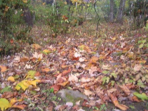 ほんのり色ずいて来た雑木林を歩くのはなかなか楽しいものです。ポキッ!!ポキッ!!と枯れ枝の折れるかすかな音・かさかさと枯れ葉の音・身体のすみずみまで浄化されていくようです。注意深く落ち葉の周りを見ながらいくとしもふりシメジやくりたけがそっつと顔を出しています。今年はキノコが豊作だそうで例年より早くからで始めています。
