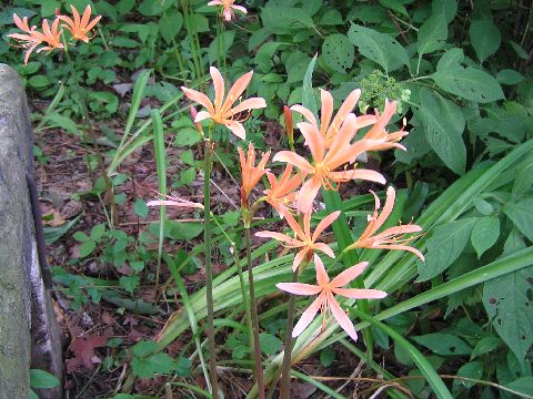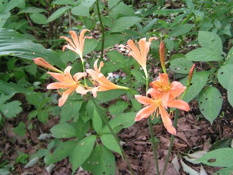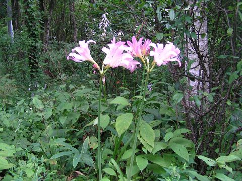 ヒョウの被害で荒れた庭にキツネノカミソリが咲き始めました。あちら此方に・・・・。こんなにあったのかと驚きました。