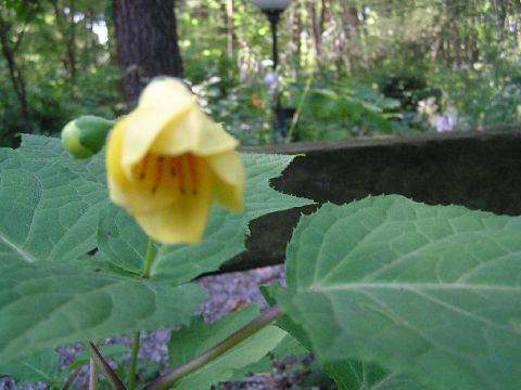 ヒョウにあう前のキレンゲショウマとあとの2枚はヒョウにあったあとのものですが、葉は穴が無数にあいています。よく蕾が無事だったものだと思います。農家の方もスイカやうり、なす、ビニールカバーが穴だらけとかいろいろと被害が大きかったようです。